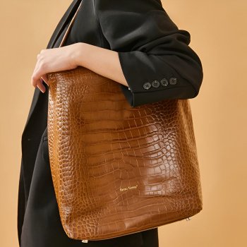 Genuine Leather Alligator Print Bucket Bag with Zipper