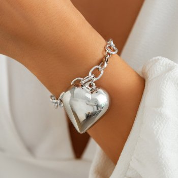 Punk Chunky Cuban Chain Bracelet for Women with Cross and Sequin Pendant