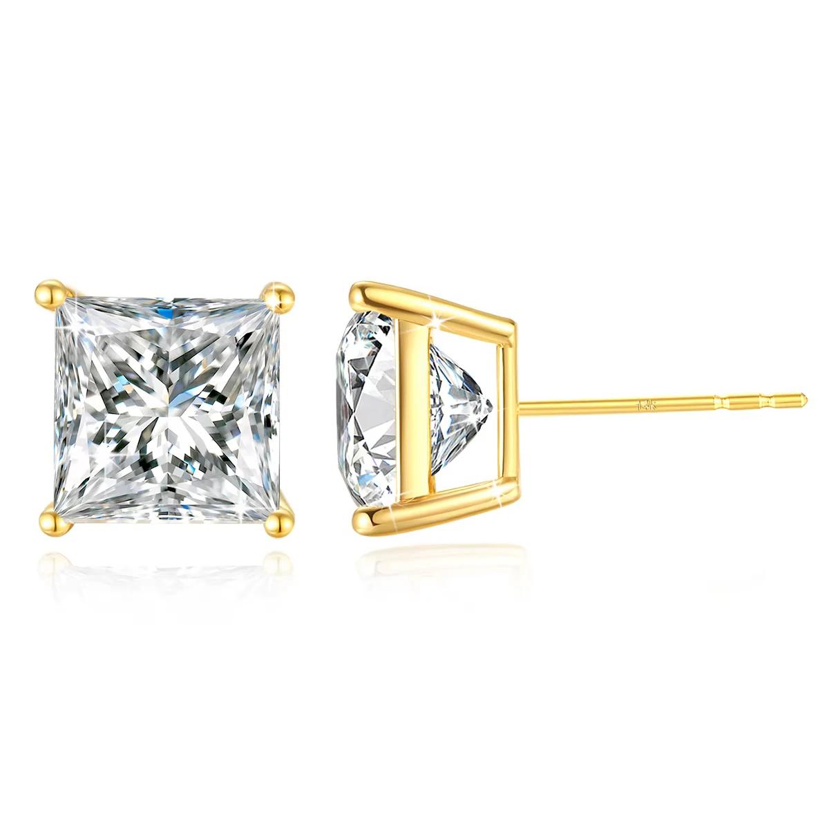 14K Gold Princess Cut Moissanite Stud Earrings 1ct–3ct Elegant Jewelry Gift