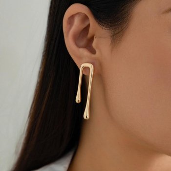 Vintage U-Shaped Geometric Stud Earrings for Women – Gold & Silver Metal