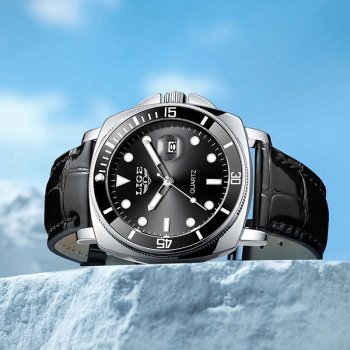Luxury Men’s Leather Quartz Watch with Calendar and Luminous Features